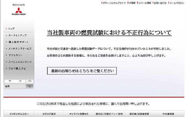 三菱自動車のホームページ