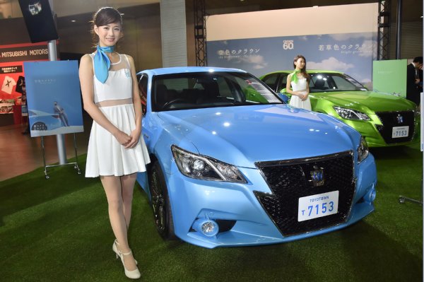 トヨタはイメチェンを図る「空色」「若草色」のクラウンも展示