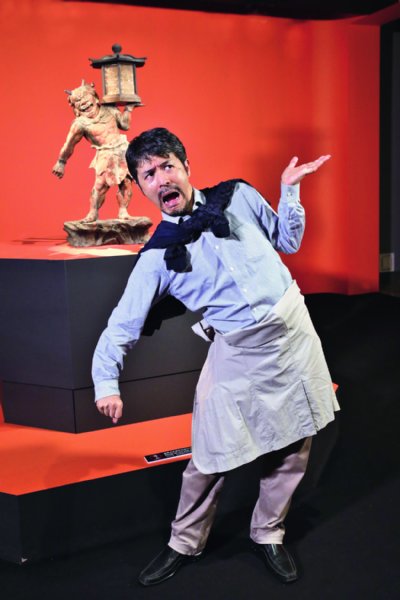 国宝・天燈鬼立像(奈良・興福寺蔵)と同じポーズを取る山口氏