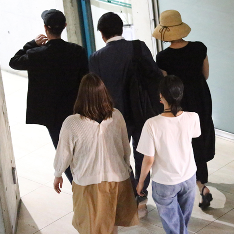 関係者にガードされて会場を後に
