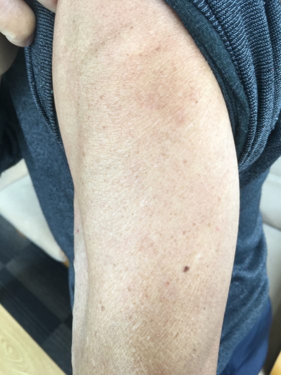 A氏の4回目接種後の左腕。腫れなどもなかったという