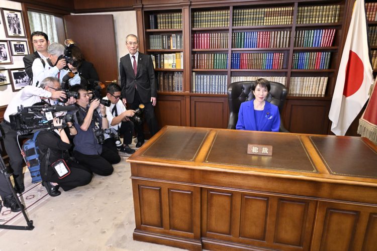 総裁の椅子に座る高市氏(撮影/JMPA)